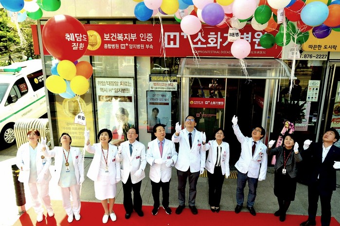 이날 개원식에서 김철수 이사장, 김상일 병원장과 새로 선임된 박재석 H+소화기병원장을 비롯한 의료진들이 소화기병의 고도화된 치료시스템을 구축하고 모든 소화기질환을 정복하는 의미에서 풍선날리기 ‘소화기질환, 날려버려!” 이벤트에 참여하여 감사의 마음과 함께 새로운 출발을 다짐했다.