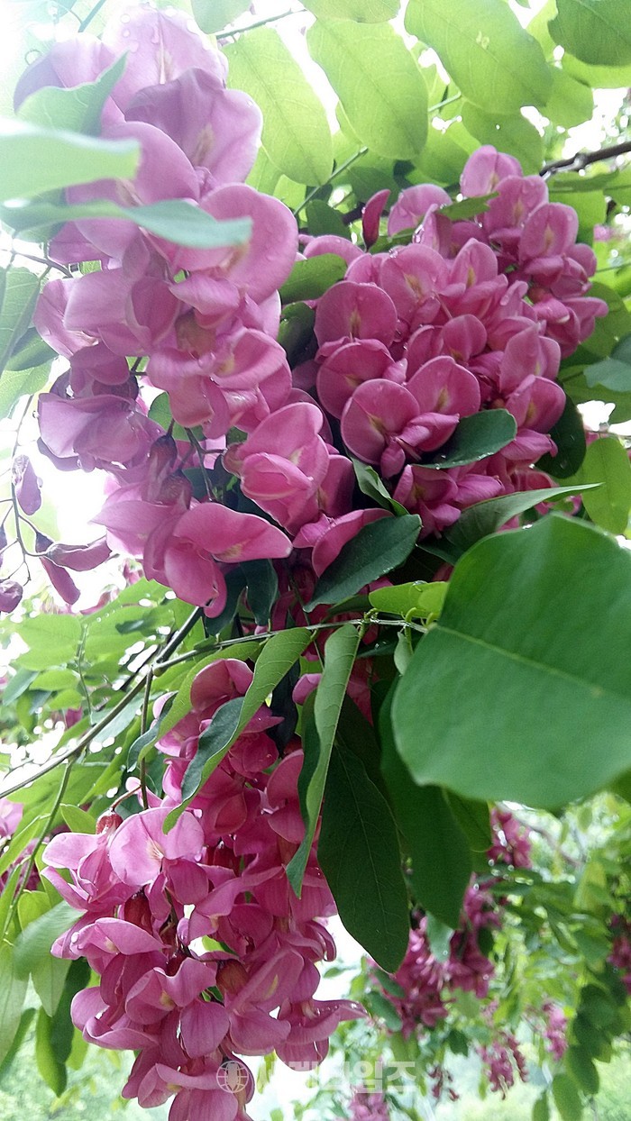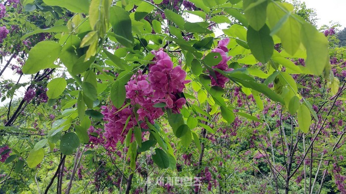 [옥천=세계타임즈 이현진 기자] 대청호가 지척인 충북 옥천군 군북면 대정리 와정마을 뒷산에 분홍색 아카시아 꽃이 만개해 눈길을 끌고 있다.