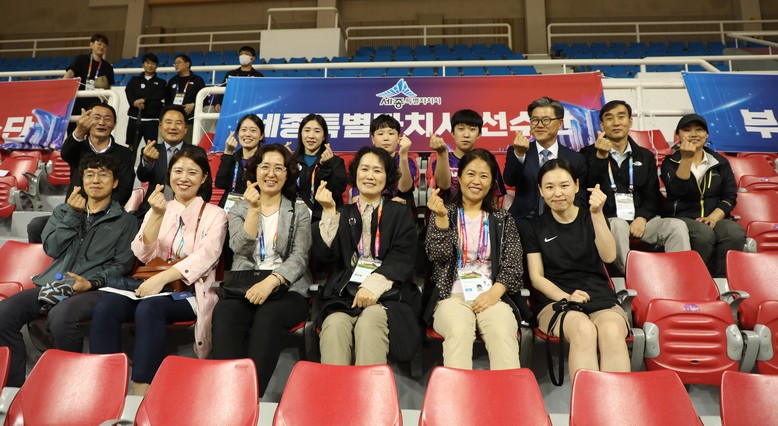 [세종 세계타임즈=이채봉 기자] 상병헌 세종시의회 의장은 18일 울산 동천체육관을 방문해 제17회 전국장애학생체육대회에 출전중인 세종시 선수단을 격려했다.