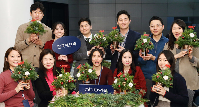 | ▲한국애브비가 지난 5일 애브비 본사 지하 2층 성실홀에서 임직원 대상으로 ‘DIY 미니 크리스마스 트리 만들기’ 클래스를 진행했다. |