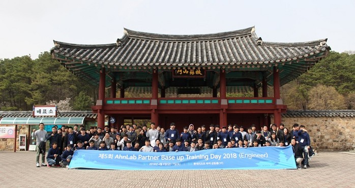 | ▲ 안랩(대표 권치중, www.ahnlab.com ) 엔드포인트플랫폼(EP) 사업부는 4월 6~7일, 충남 부여에서 공인 파트너사를 대상으로 ‘제 5회 AhnLab Partner Base Up Training Day 2018(안랩 파트너 베이스 업 트레이닝 데이)’을 진행했다. |