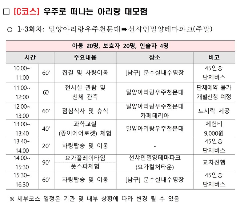 마지막으로 ▲시과정(C코스, 3회)은 과학·스포츠 융합 분야로, 천문대 견학을 통해 우주·과학 직업군을 체험하고, 요가 프로그램을 통해 스포츠 및 건강 분야의 직업군에도 관심을 가질 수 있도록 운영된다.