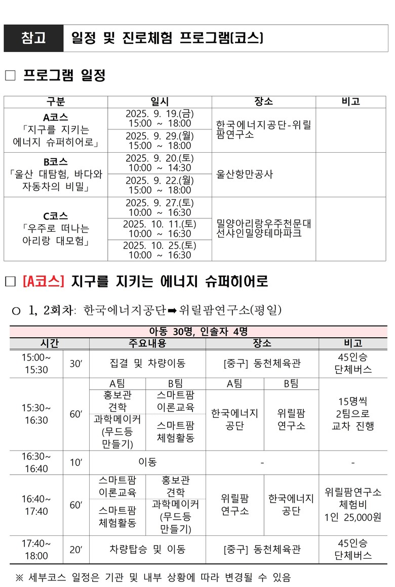 프로그램은 지역 주요 산업과 연계해 아동의 적성과 눈높이에 맞게 진로를 탐색할 수 있도록 3개 과정(코스), 총 7회로 구성된다.