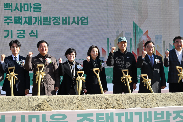 [서울 세계타임즈=이장성 기자] 서울특별시의회 주택공간위원회(위원장 김태수, 국민의힘, 성북구 제4선거구)는 12월 1일 오전 10시 20분, 노원구 중계본동 30-3 일대에서 열린 ‘백사마을 재개발사업 기공식’에 참석했다. 이날 기공식은 서울의 대표적인 저층주거 밀집지역이자 마지막 달동네로 불렸던 백사마을이 새로운 주거단지로 탈바꿈하는 첫걸음을 알리는 자리다.