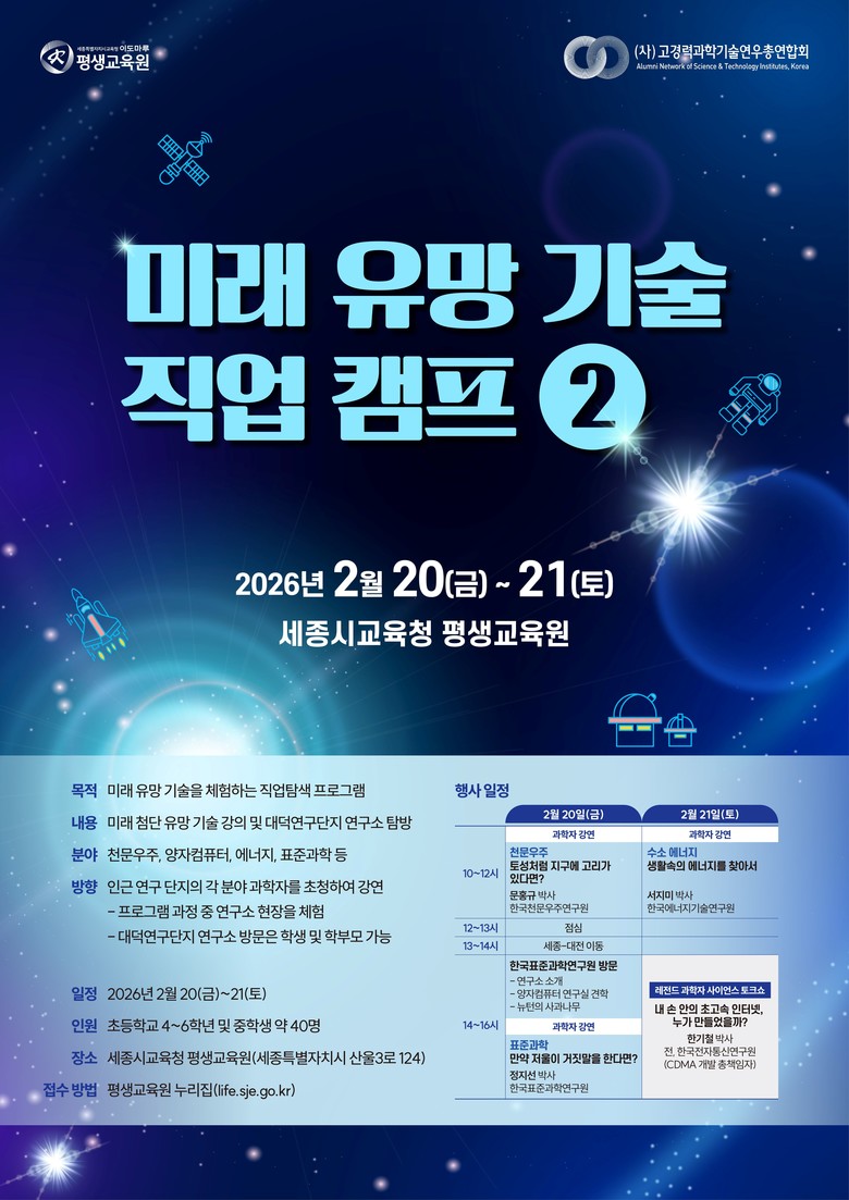 이번 프로그램은 청소년들에게 미래 첨단 기술에 대한 안목을 넓혀주고, 대한민국 과학기술 발전을 이끈 석학들과의 만남을 통해 과학적 호기심과 진로 탐색의 기회를 제공하기 위해 마련됐다. 특히 지난 1월 첫 운영 당시 조기 마감될 정도로 등 큰 인기를 끌었던 점을 반영해, 2월에는 더욱 알찬 내용과 체험 중심 프로그램으로 구성했다.
