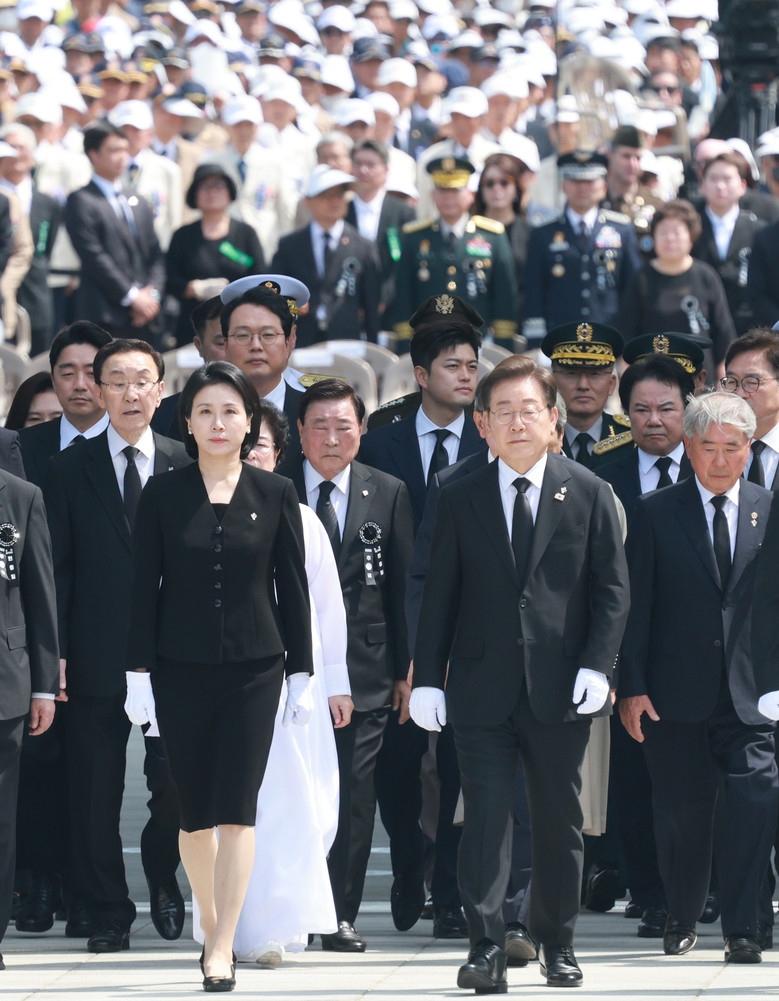 [세계타임즈 = 이채봉 기자] 이재명 대통령과 김혜경 여사가 6일 서울 동작구 국립서울현충원에서 열린 70회 현충일 추념식에서 참배를 위해 현충탑으로 향하고 있다. 2025.6.6 [대통령실통신사진기자단]