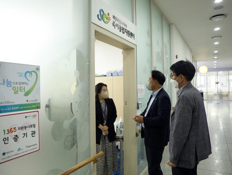 [세종 세계타임즈=이채봉 기자] 세종특별자치시의회 상병헌 의장은 22일 종촌종합복지센터를 격려 방문한 자리에서 입주 시설 및 기관 현황을 청취하고 민간 위탁 사회복지시설 관계자를 만나 운영상 애로사항 등을 논의했다.