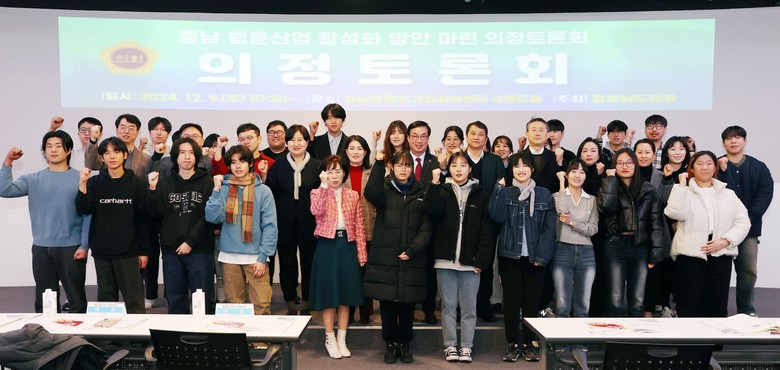 [충남 세계타임즈=이현진 기자] 충남도의회는 9일 충남정보문화산업진흥원 충남콘텐츠기업지원센터 이벤트홀에서 ‘충남 웹툰산업 활성화 방안 마련’을 주제로 의정토론회를 개최했다.