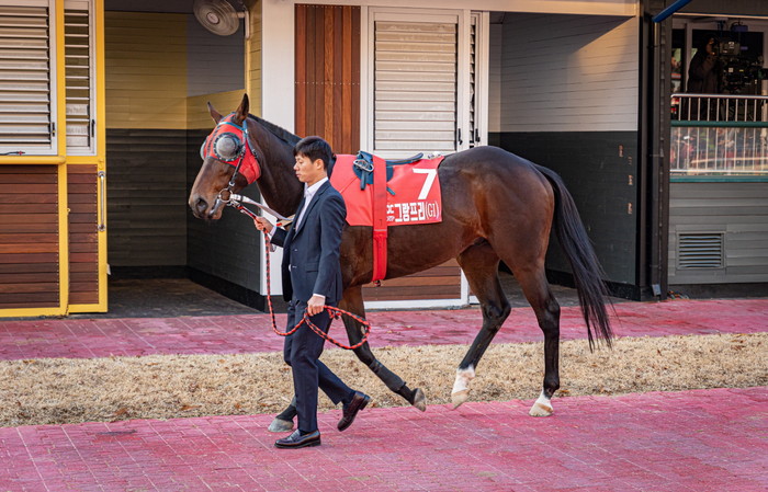 지난 8일(일) 열린 그랑프리 경주 예시장에서는 한층 품격 있는 복장의 말관리사들과 그들을 따르는 10마리의 경주마들이 평가위원단과 방문객들의 눈길을 끌었다. 한국 최고 경주마를 선발하는 그랑프리의 취지에 부합하여 경주마들은 장구에서부터 갈기까지 한껏 멋을 내고 나왔으며, 상당수의 말 말관리사들도 정장을 입고 예시장에 등장하였다.