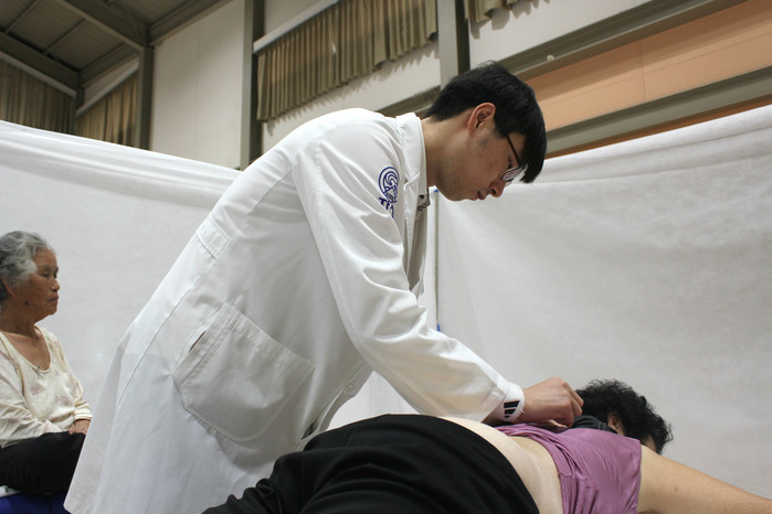 | ▲ 대전자생한방병원 의료진이 금산군 주민에게 침치료를 실시하고 있다 |