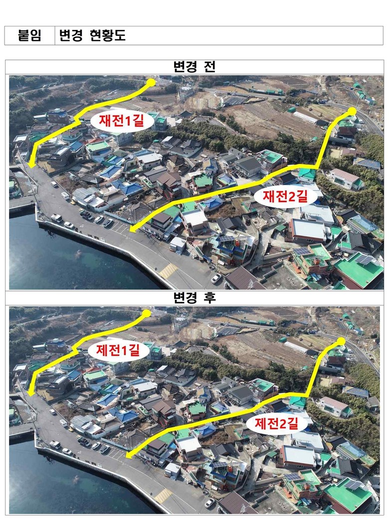 이후 3월 21일부터 4월 4일까지 주민 의견 수렴기간을 거쳐 당초 ‘재전1길, 재전2길’에서 ‘제전1길, 제전2길’로 변경이 최종 확정됐다.