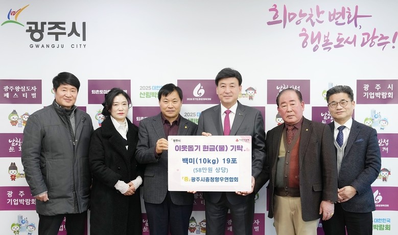 또한, 광주시충청향우연합회 남기조 회장은 “겨울철 어려움을 겪는 이웃들에게 도움이 되길 바라는 마음으로 백미를 준비했다”며 “앞으로도 지역사회 나눔 활동을 이어가겠다”고 밝혔다.