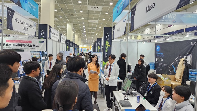 소프트웨이브 2023은 디지털 대전환의 핵심인 소프트웨어의 현재와 미래를 조망하는 국내 최대 SW 전시회이다. 이곳에서 320여 개 기업이 560개 부스를 꾸려 첨단 기술과 서비스를 선보인다. 광주소마고 학생들은 부스를 운영하며 과학기술정보통신부 및 정보통신기획평가원(IITP)의 지원을 받아 자체 개발한 친환경 앱 '미소'와 입학 지원 서비스 'Hello GSM'을 소개했다.
