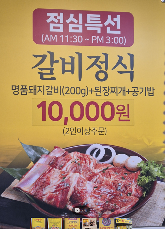 특히 화학조미료가 들어가지 않은 것은 물론이고 전지, 후지를 섞지 않은 100% 뼈 삼겹살 본대 갈비만 사용하는 진짜 돼지갈빗집이다. 셀프바가 있어서 부족한 및 반찬들은 손님이 직접 더 가져가셔서 드실 수가 있다.