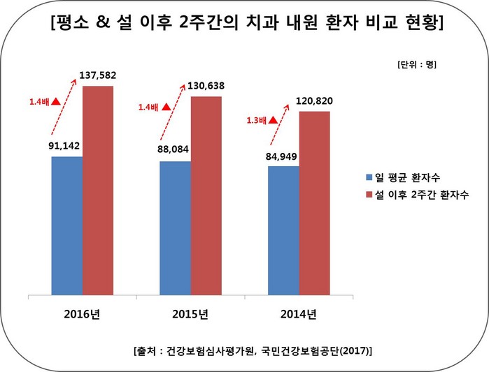 실제 건강보험심사평가원의 자료에 따르면 2016년 치아우식, 치은염, 구내염, 보철물재부착 등 다양한 이유로 치과를 내원한 환자가 하루 평균 9만1000명이다. 하지만 같은 해 설 연휴기간 그 이후 14일간 치과진료를 받은 인원이 하루 평균 13만7000명으로 평소보다 1.4배 더 많은 치과 환자가 병원을 찾았다. 명절 기간 동안 치아관리를 잘 하지 못한 경우, 치아가 시리거나 치통 등의 특별한 증상이 없더라도 명절 동안 섭취한 달고 끈적한 음식이 치아에 남아 충치나 치주질환의 원인이 될 수 있다. 백영걸 용인동백점 유디치과의원 대표원장의 도움말로 명절 이후 살펴봐야 할 구강질환에 대해 알아봤다.