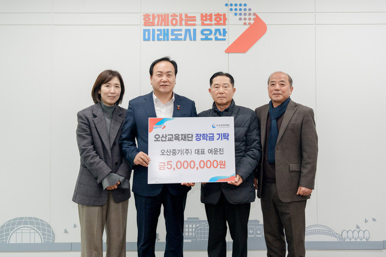 이권재 오산시장은 “지역사회를 위해 꾸준히 나눔을 실천해 주고 계신 여운진 대표님께 진심으로 감사드린다”며 “기탁해 주신 장학금은 오산 학생들이 꿈과 재능을 마음껏 펼칠 수 있도록 소중히 활용하겠다”고 밝혔다.