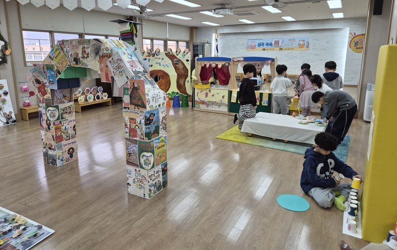 행사 마무리로는 포토존, 게임, 인형 극장, 역할놀이 등 4개의 체험 부스를 운영하여 유아들이 그동안 놀이해 온 독서 경험을 축제 형태로 즐길 수 있도록 하였다. 각 반에서 완성한 작품을 전시하고 서로의 활동을 감상하는 시간을 통해 성취감과 배려의 태도도 함께 기를 수 있었다.