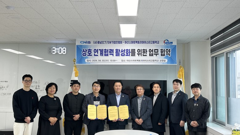 [아산시 세계타임즈=백택기 기자] 아산스마트팩토리마이스터고등학교(교장 조동헌)는 (사)충남ICT/SW기업인협회(회장 이성환)와 상호 연계협력 활성화를 위한 업무협약을 체결했다.