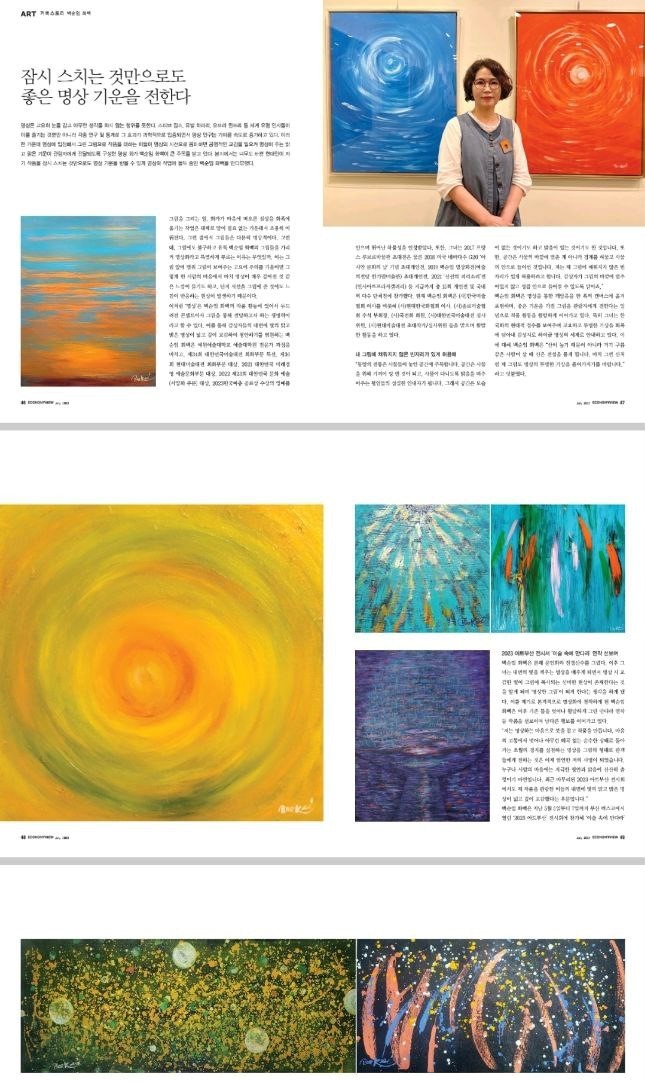한편 백순임 화백은 지난 5월에 열린 부산 벡스코 ‘2023 아트부산’ 전시회에 참가해 ‘이슬 속에 만다라’ 연작 15점을 선보여 화제를 모았던 적이 있다. 만다라 연작은 전통적인 만다라화의 형식에서 벗어나 있는 모습으로 더욱 주목받았다.