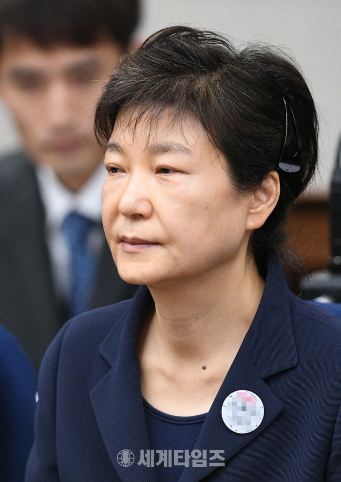 박근혜 전 대통령이 23일 서울 서초구 서울중앙지법 417호 대법정에서 재판 시작을 기다리고 있다. 박 전 대통령은 지난 3월 31일 서울구치소에 수감된지 53일만에 모습을 드러냈다. 2017.05.23.