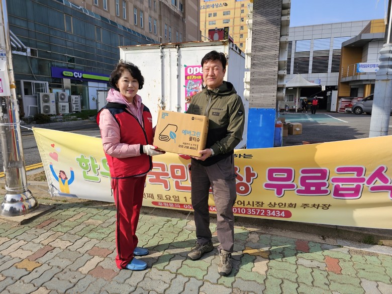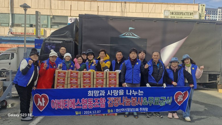 그런 가운데 '이 비티에스 협동조합' ,소셜벤처 기업인 '이비티에스'는 다양한 곳에서 나눔을 실천하고 있다. 얼마 전 마산어시장 상인회 주차장에서 경남여성봉사단과 국민 밥상과 함께 따뜻한 겨울나기 "사랑 나눔 봉사"를 실시하기도 하였다.