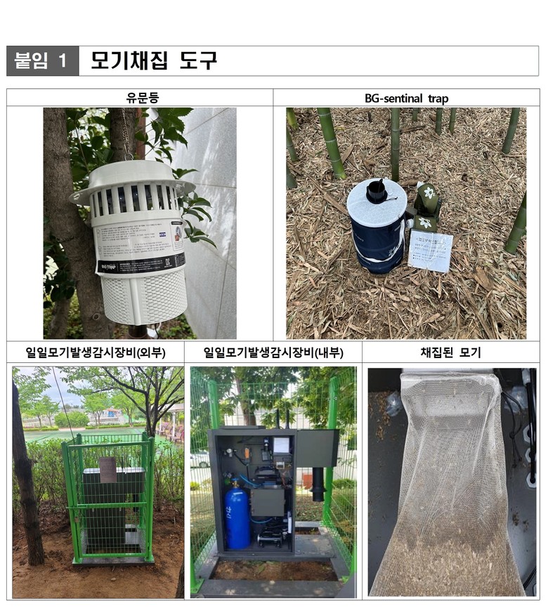 이 감시사업은 관내 도심과 공원, 축사에서 주 2회 모기를 채집해 감염병 매개 모기별 발생 감시 및 병원체 감염률을 조사한다.