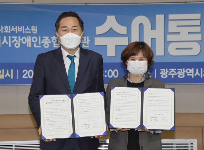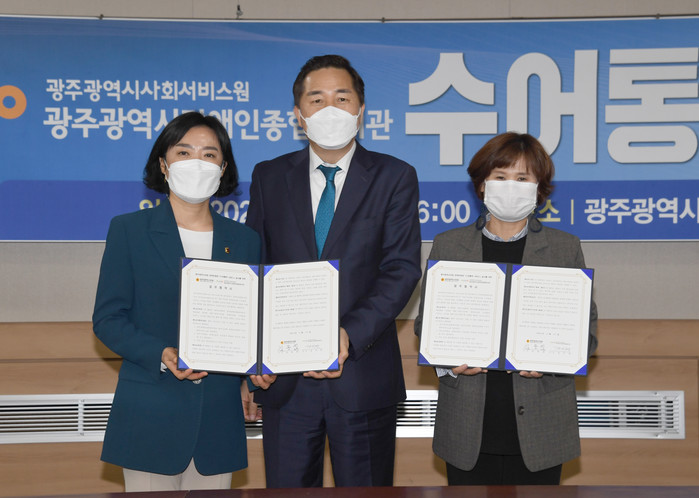 [광주=세계타임즈 손권일 기자] 광주광역시의회(의장 김용집)와 광주광역시장애인종합복지관(관장 김미란)이 ‘수어통역 서비스’ 지원 업무협약을 체결했다.