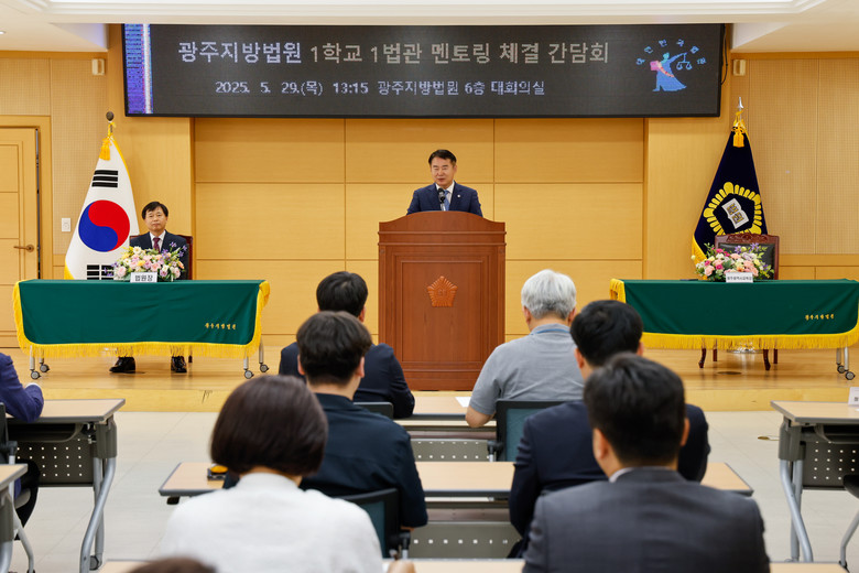 [광주 세계타임즈=손권일 기자] 광주시교육청(교육감 이정선)과 광주지방법원(법원장 장용기)이 지난 29일 광주지방법원 대회의실에서 ‘1학교 1법관 진로멘토링’ 체결식을 진행하고, 진로멘토링과 연계된 모의재판 경연대회 운영을 추진하기로 협의했다.