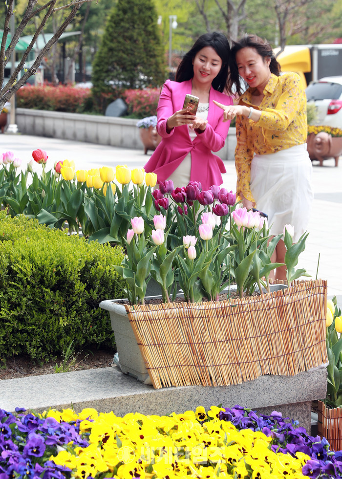 [대전 서구=세계타임즈 이장성 기자] 대전 서구청 광장에 형형색색의 아름다운 튤립 1만여 송이가 만개해 구청을 찾는 민원인과 구민들의 눈길을 사로잡고 있다.