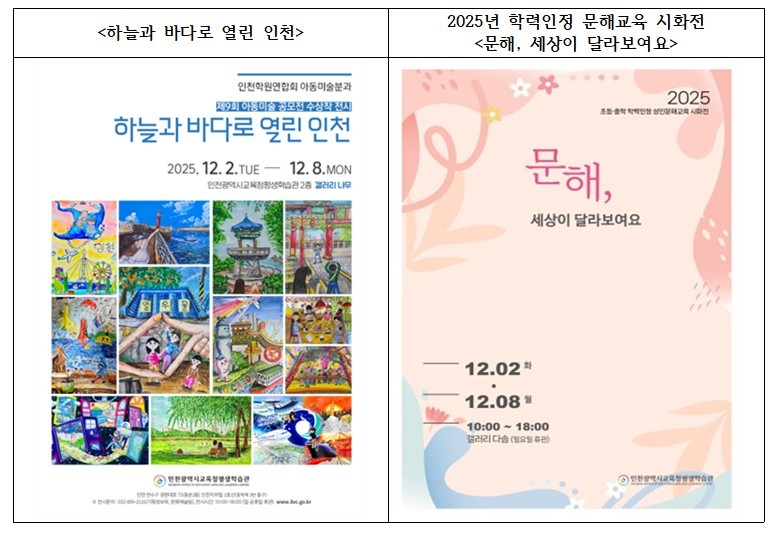 두 전시는 12월 2일(화)부터 12월 8일(월)까지 평생학습관 2층 갤러리 나무와 다솜에서 오전 10시부터 오후 6시까지 운영되며, 누구나 무료로 관람할 수 있다. 단, 일요일과 공휴일은 휴관한다.