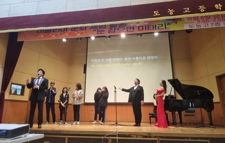 [남양주시 세계타임즈=송민수 기자] 경기도구리남양주교육지원청 도농고등학교(교장 이지명)는 이탈리아 문화 이해도를 넓히는 활동 일환으로 10월 1주 ‘눈 감으면 이태리’라는 테마의 음악회를 개최하였다.