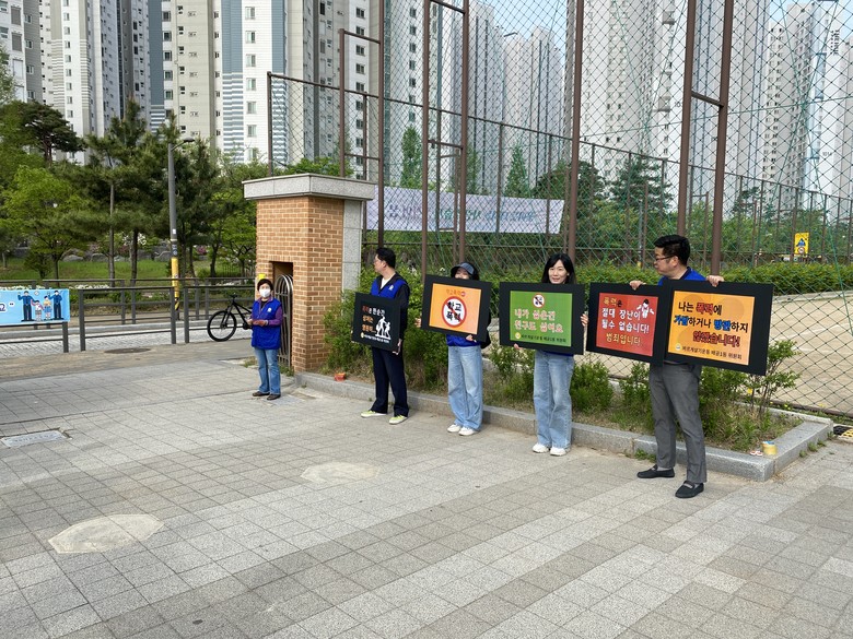 더불어 등교하는 아이들을 향해 ‘학교 폭력은 안 돼요.’,‘친구를 사랑합시다’등 직접 학교 폭력을 거부하는 메시지를 전달하며, 친구 사이의 존중과 사랑을 강조하였다. 또한, 요즈음 아이들의 사이버 환경 노출 증가를 고려하여 등교하는 아이들에게 사이버 폭력 예방 관련 자료를 제공하였다.