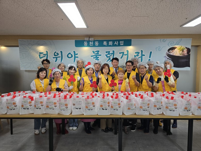 동천동지역사회보장협의체는 초복을 맞이하여 관내 저소득계층 150가구에 직접 만든 한방전복삼계탕을 전달하며 건강과 안부를 확인하는 등 훈훈한 이웃사랑을 실천하였다.