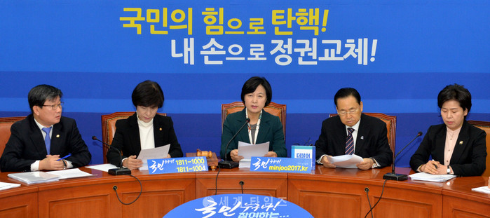 [세계타임즈 심귀영 기자]더불어민주당은 26일 "황교안 대통령 권한대행은 민심을 외면한 오판으로 국민의 심판을 자초하지 말라"며 황 대행에 특검 수사기간 연장 수용을 압박했다.