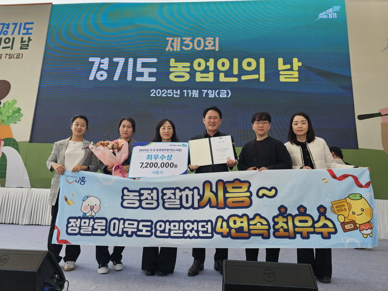 [시흥시 세계타임즈=송민수 기자] 시흥시(시장 임병택)는 지난 11월 7일 열린 ‘제30회 경기도 농업인의 날’ 기념행사에서 경기도가 주관한 ‘2025년 농정업무 평가’ 최우수상을 받았다.