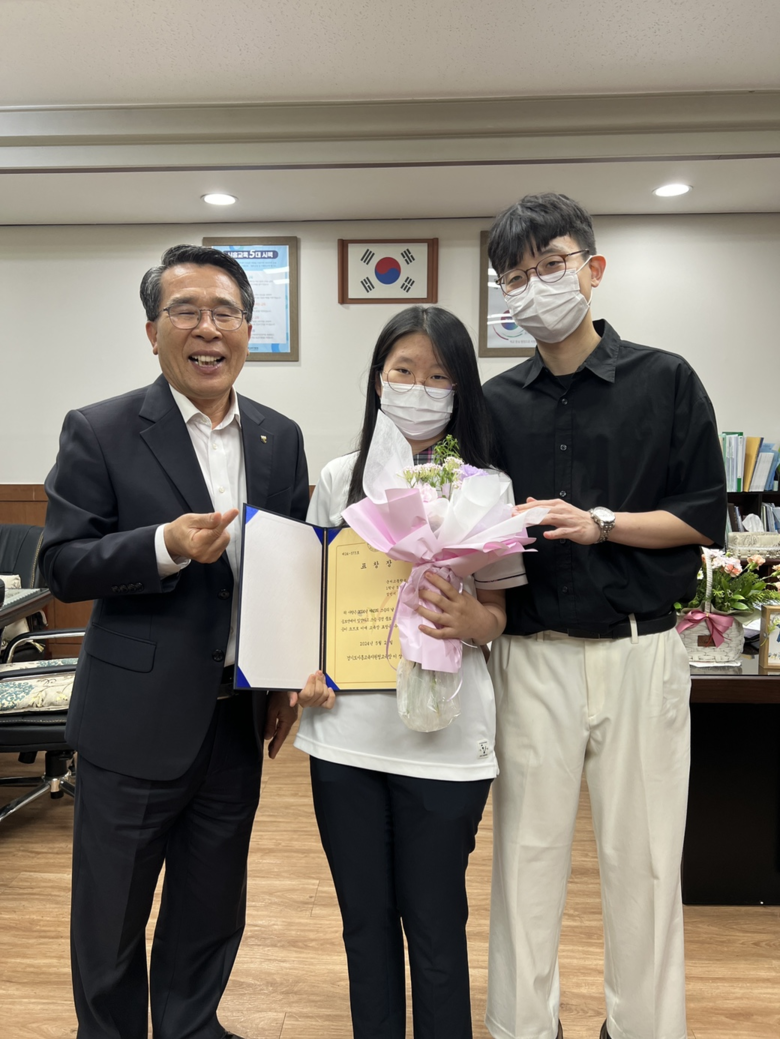 [시흥시 세계타임즈=송민수 기자] 시흥교육지원청에서 개최한 2024 제43회 스승의 날 『사랑합니다!』 공모전에서 경기도 시흥시에 소재한 군서고등학교의 1학년 정○○ 학생이 에세이 부문에서 ‘멋진 교사’라는 제목의 글로 교육장 표창을 수상하였다.