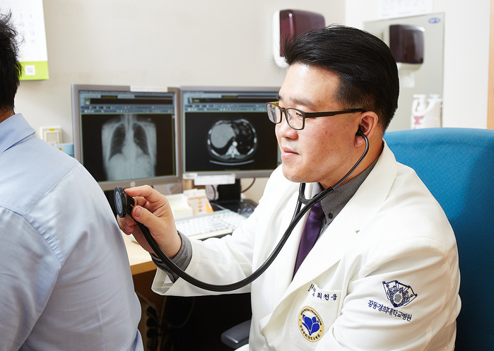 | ▲폐렴 환자를 진료 중인 호흡기내과 최천웅 교수 |