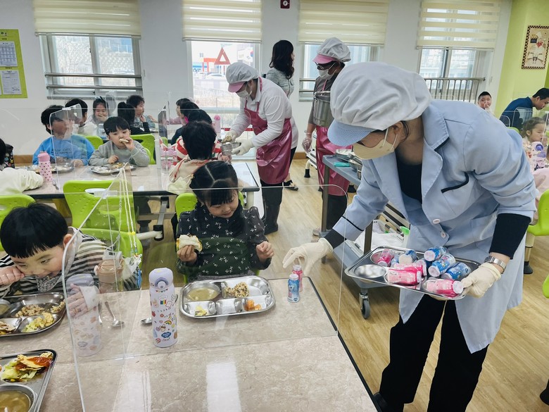 식사 시간에는 영양교사와 조리사 선생님이 함께하며, 더 먹고 싶은 유아가 손을 들면 추가 배식을 통해 식사량을 조절할 수 있도록 돕고 있다. 이를 통해 유아들은 음식을 남기지 않고 정한 양을 먹는 조절 능력을 자연스럽게 익혀나가고 있다.
