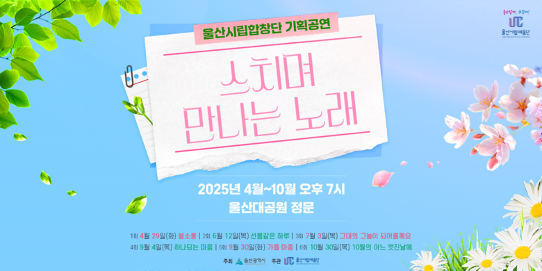 울산문화예술회관 관계자는 “시립합창단 기획공연 ‘선물 같은 하루’는 가족 단위로 부담 없이 즐길 수 있는 야외음악회로 자연과 어우러진 여유로운 저녁을 경험할 수 있는 특별한 기회가 될 것이다”라고 말했다.
