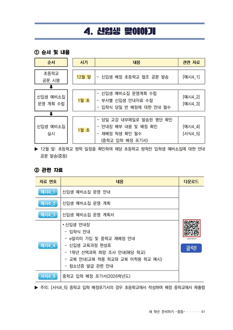 이번 자료는 교원이 새 학기에 겪는 행정 업무 부담을 덜고 학생 교육 준비에 전념할 수 있는 환경을 조성하고자 제작됐다.