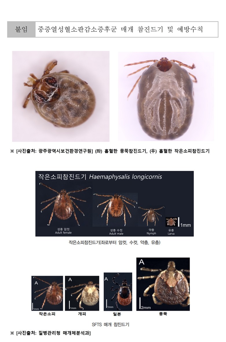 광주보건환경연구원은 2014년부터 2023년까지 참진드기 물림으로 신고·의뢰된 180여 건에 대해 중증열성혈소판감소증후군바이러스 검사를 수행한 결과, 해당 바이러스가 검출되지 않았다.