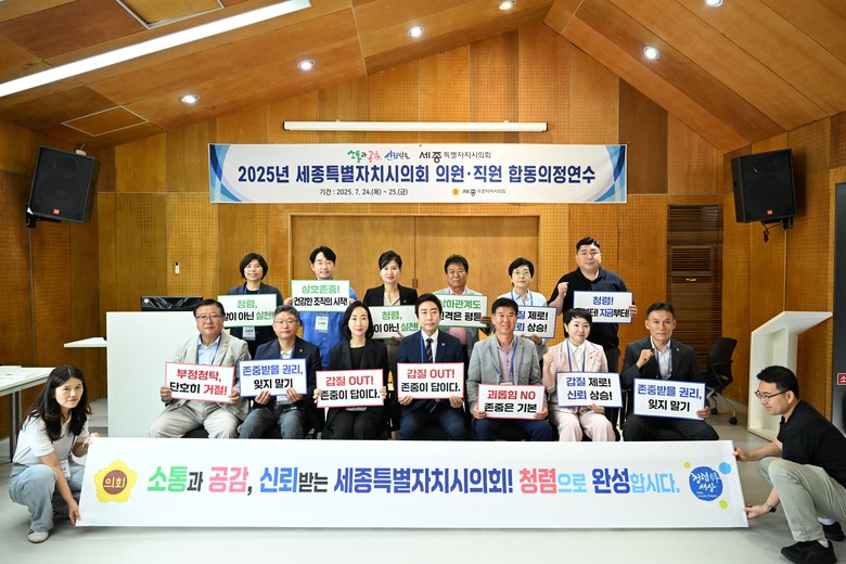 [세종 세계타임즈=이채봉 기자] 세종특별자치시의회(의장 임채성)는 24일부터 25일까지 충남 공주시 일원에서 ‘2025년 의원‧직원 합동 의정연수’를 실시한다.