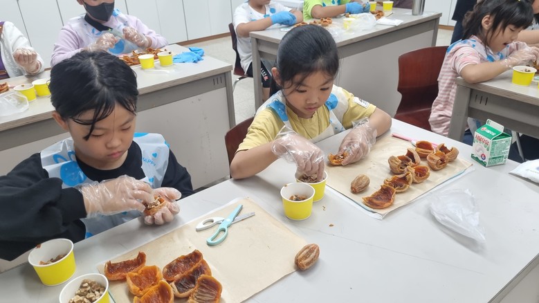 요리를 완성한 후 곶감말이를 하나씩 먹어본 한 학생은 “곶감만 먹을 때 보다 훨씬 맛이 있고 오늘 가족들과 함께 나눠 먹고 싶어요”라고 말했다.