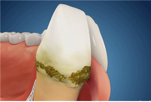| ▲ 치아와 잇몸 사이에 치석이 둘러 쌓여 있다. |