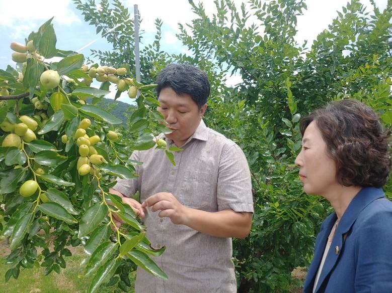 간담회는 올해 대추 개화 시기인 7월 중 12일간의 연속 강수로 착과 상태가 매우 저조해 전년 대비 13%가량 감소한 994t으로 역대 최저 생산이 예상됨에 따라 대추 생산량 감소 최소화 방안 마련을 위해 마련됐다.