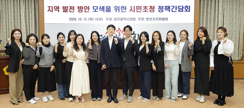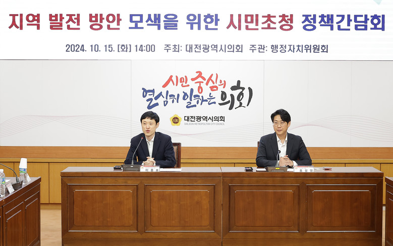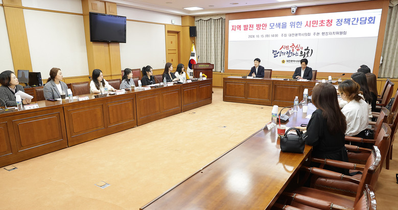 대전시의회가 주최하고 행정자치위원회가 주관한 이날 간담회에는 서구 둔산동 주민뿐 아니라 대전이 더 살기좋은 도시로 발전하길 바라는 시민들이 토론자로 참석했으며 ‘0시 축제 참여 후 느낀 장ㆍ단점 및 개선 방안’과 ‘아이 키우기 좋은 도시가 되기 위한 방안’, ‘한밭수목원, 오월드 등 대전의 대표 시설에 대한 제언’ 등을 주제로 자유토론을 이어갔다.