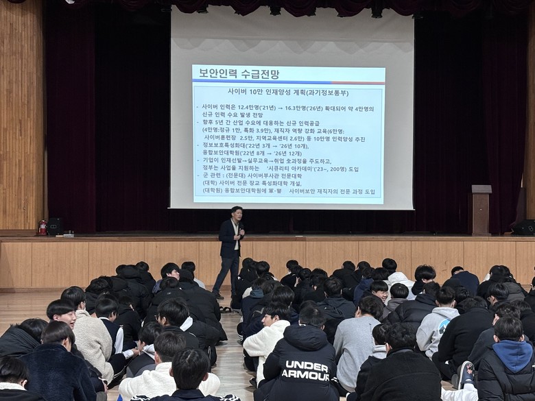 이번 특강은 ‘화이트 해커’라는 주제로 건양대학교 사이버보안공학과 차건상 교수를 초빙해 강의를 진행했으며 디지털 전환 시대에 정보보안의 중요성과 화이트해커의 직업적 가치에 대해 학생들이 이해할 수 있는 시간이 됐다.