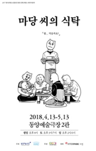 연극 <마당 씨의 식탁>이 지난 13일 예매를 오픈하고 관객들에게 그 첫 모습을 드러냈다. 인기 만화 ‘마당 씨의 식탁’은 작가 홍연식의 ‘마당 씨 3부작’ 중 첫번째 작품으로 지난 2015년 ‘오늘의 우리 만화상’(주최. 문화체육관광부/ 주관. 한국만화영상진흥원)을 수상한 작품. 작가 홍연식은 자신의 자전적인 이야기를 글과 그림으로 담아 자연스러움은 물론 가족의 문제를 음식을 통해 접근, 행복하기도 하지만 아픈 가족의 양면성을 위트있게 그려 호평을 받았다.