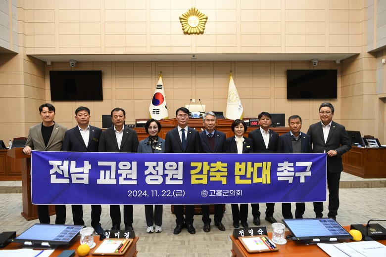 한편, 고흥군의회는 본 ‘전남 교원 정원 감축 반대 촉구 건의문’을 대통령실과 국회, 교육부 및 행정안전부 등에 전달할 예정이다.