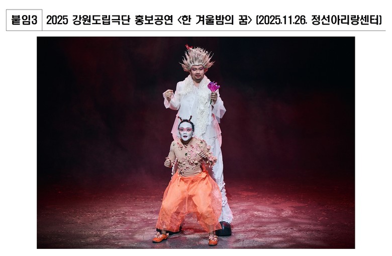 ‘지역인재 우선선발’은 ▲공고일(2026.1.9.) 기준 강원도 내 거주 이력이 합산 만 1년 이상 ▲도내 소재 극단 공연 작품에 4회 이상 참여한 경력을 갖춘 배우를 대상으로 하며, 지역에서 활동해 온 예술 인력이 공공극단의 무대에서 지속적으로 성장할 수 있도록 구조를 마련했다는 점에서 의미가 크다.